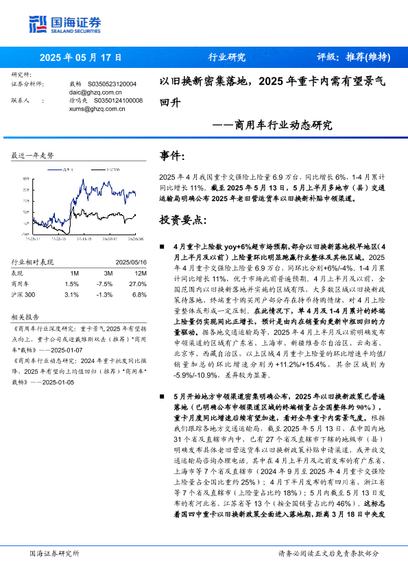 【国海证券】【20250517】以旧换新密集落地,2025年重卡内需有望景气回升-16页