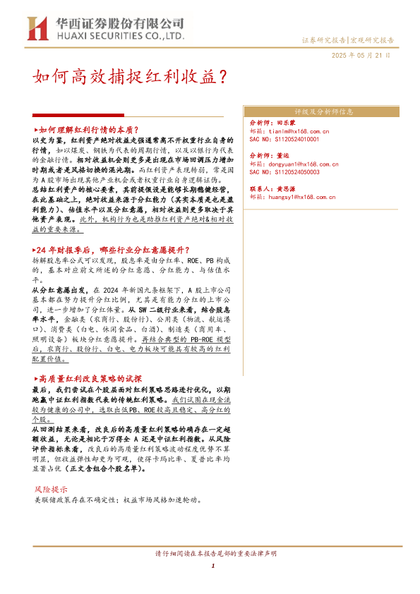 【华西证券】【20250521】如何高效捕捉红利收益?-14页
