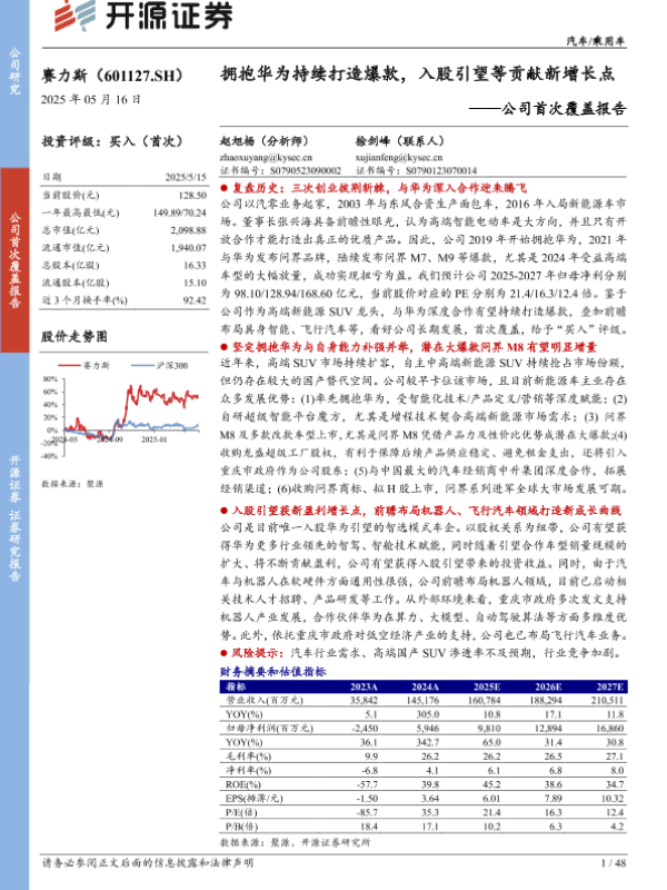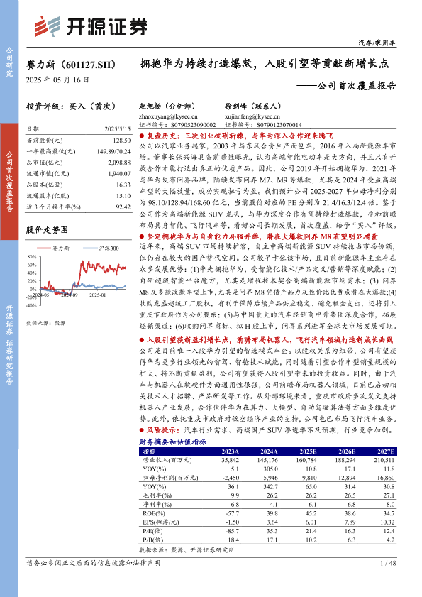 【开源证券】【20250516】赛力斯(601127)公司首次覆盖报告:拥抱华为持续打造爆款,入股引望等贡献新增长点-48页
