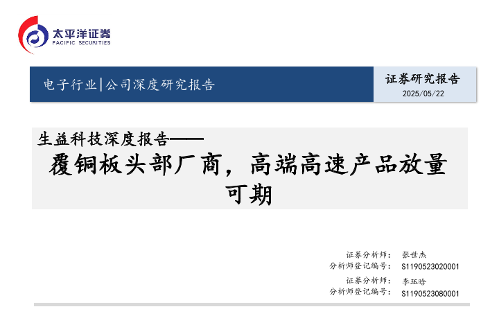【太平洋证券】【20250522】生益科技(600183)深度报告:覆铜板头部厂商,高端高速产品放量可期-34页