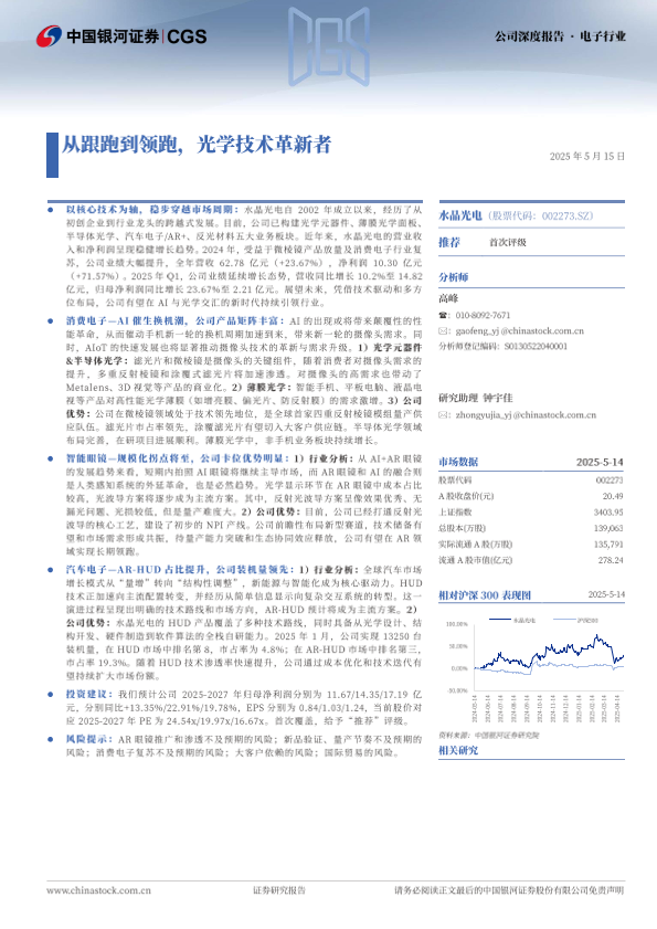 【银河证券】【20250515】水晶光电从跟跑到领跑,光学技术革新者-39页