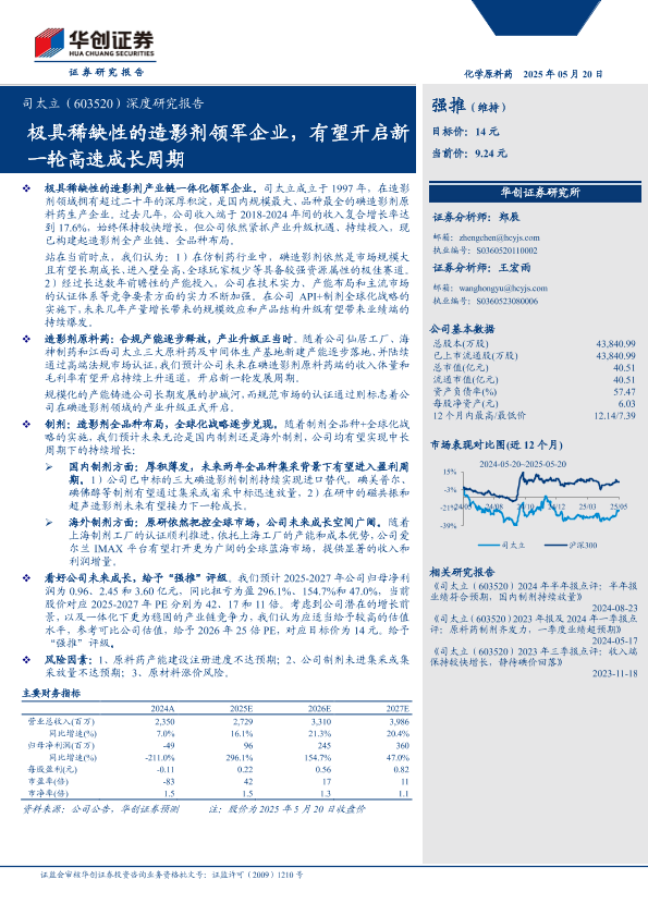 【华创证券】【20250520】司太立(603520)深度研究报告:极具稀缺性的造影剂领军企业,有望开启新一轮高速成长周期-29页