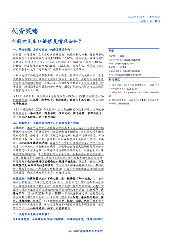中美经贸 关税影响 对美出口链 市场表现 投资策略