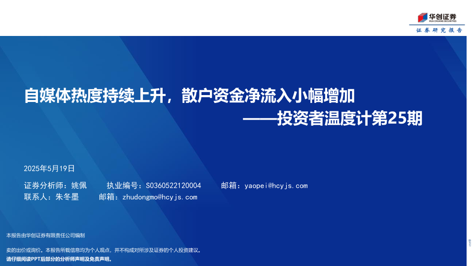 【华创证券】【20250519】投资者温度计第25期:自媒体热度持续上升,散户资金净流入小幅增加-16页