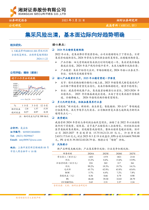 【湘财证券】【20250521】威高骨科(688161)集采风险出清,基本面边际向好趋势明确-27页