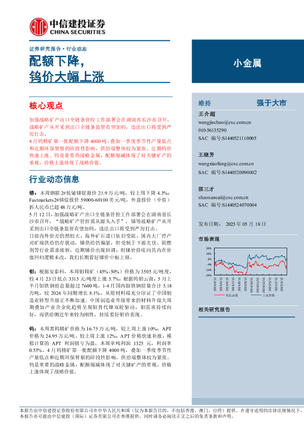 【中信建投证券】【20250518】小金属行业动态:配额下降,钨价大幅上涨-10页