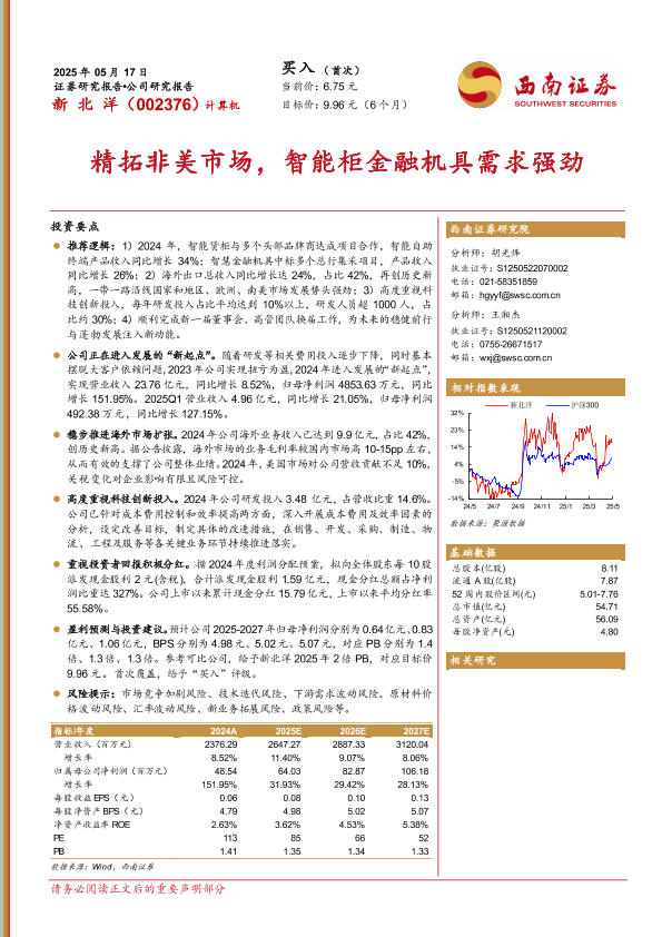 【西南证券】【20250517】新北洋(002376)精拓非美市场,智能柜金融机具需求强劲-19页