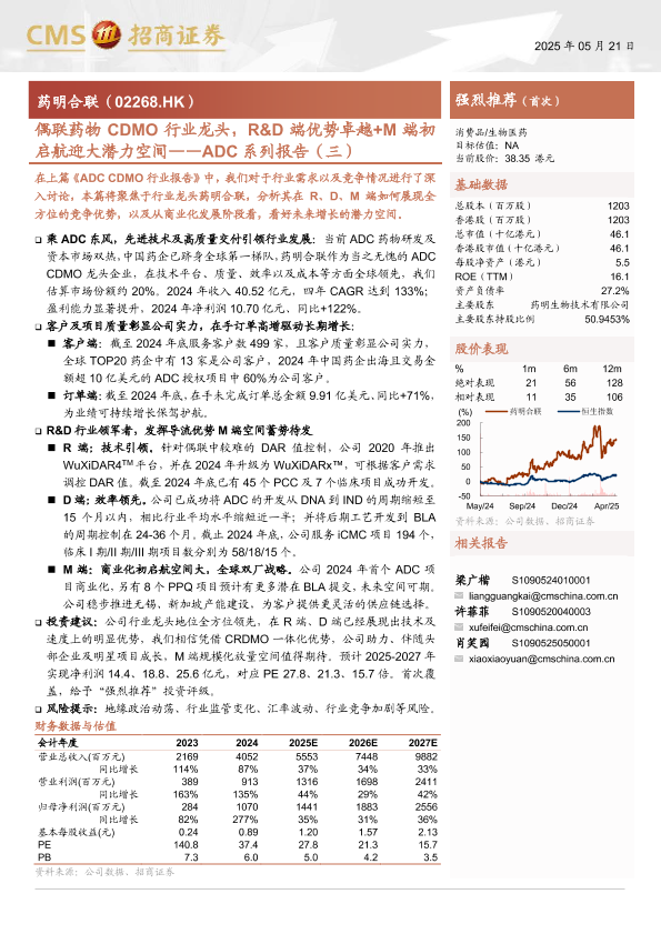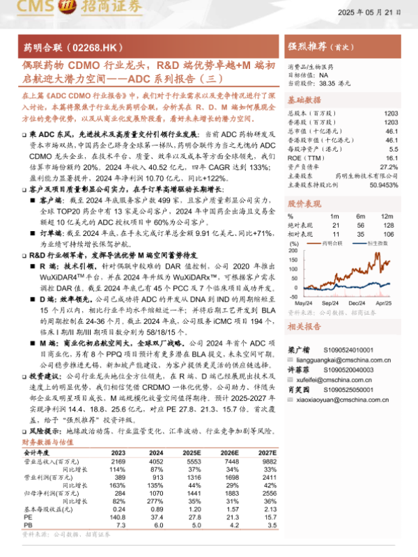 【海通证券】【20250521】明合联(2268.HK)ADC系列报告(三):偶联药物CDMO行业龙头,R&D端优势卓越+M端初启航迎大潜力空间-16页