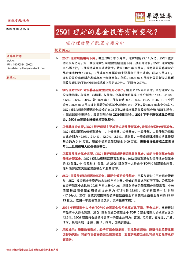 【华源证券】【20250522】25Q1理财的基金投资有何变化?-26页
