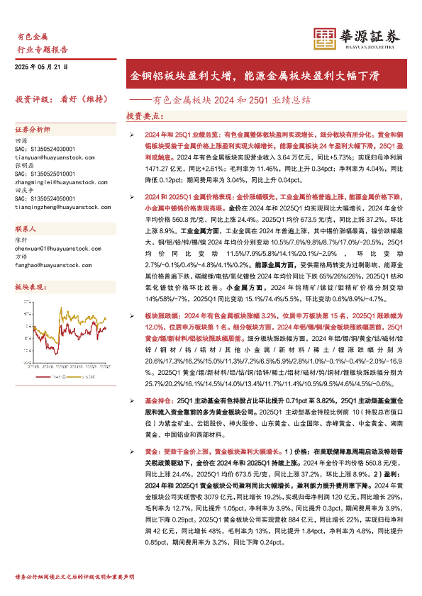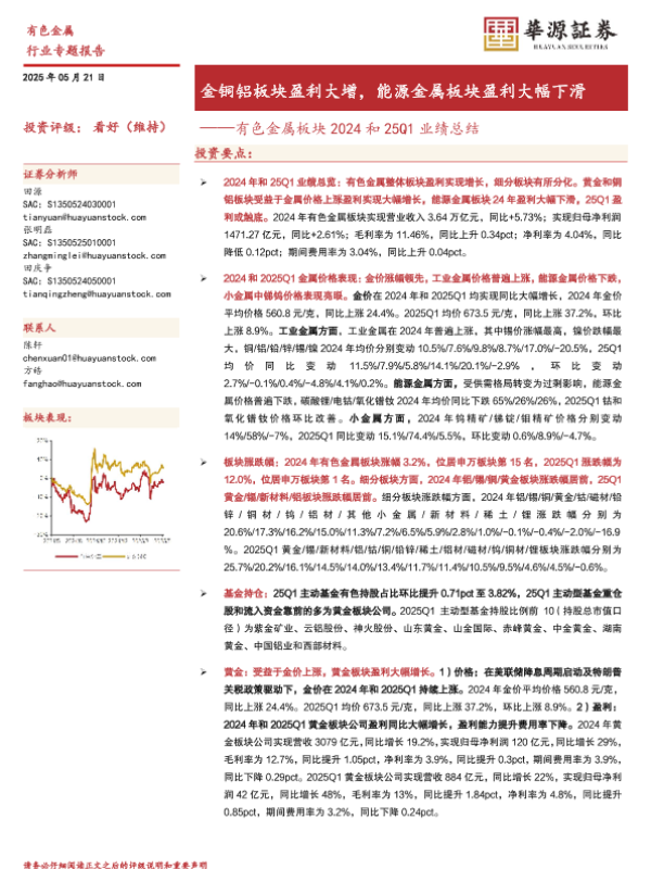 【华源证券】【20250521】有色金属行业板块2024和25Q1业绩总结-23页