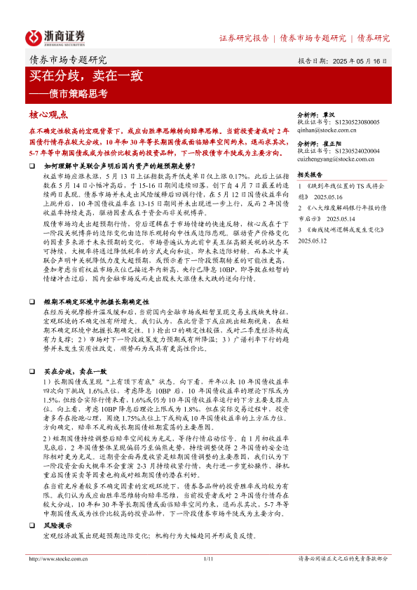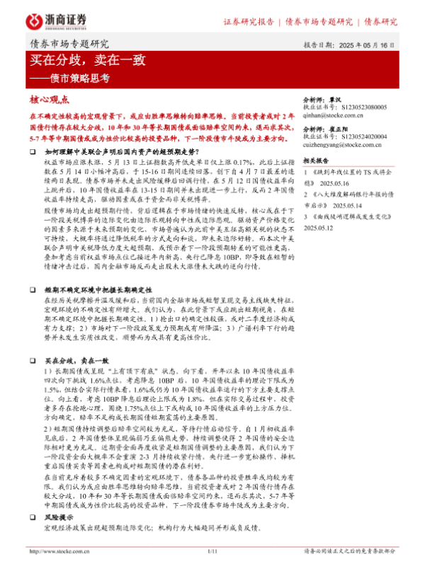 【浙商证券】【20250516】债市策略思考:买在分歧,卖在一致-11页