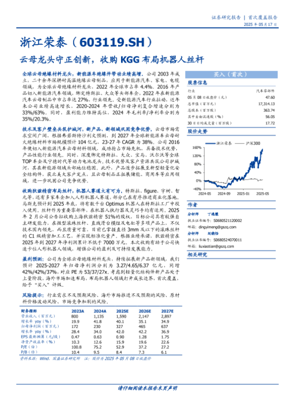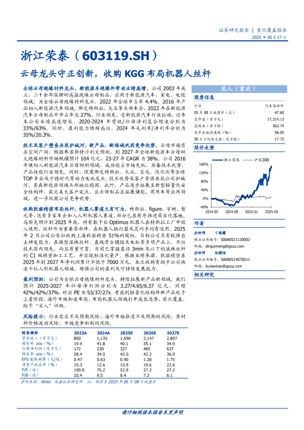 【国盛证券】【20250517】浙江荣泰云母龙头守正创新,收购KGG布局机器人丝杆-25页