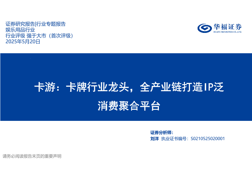 【华福证券】【20250520】娱乐用品行业专题报告:卡游,卡牌行业龙头,全产业链打造IP泛消费聚合平台-39页