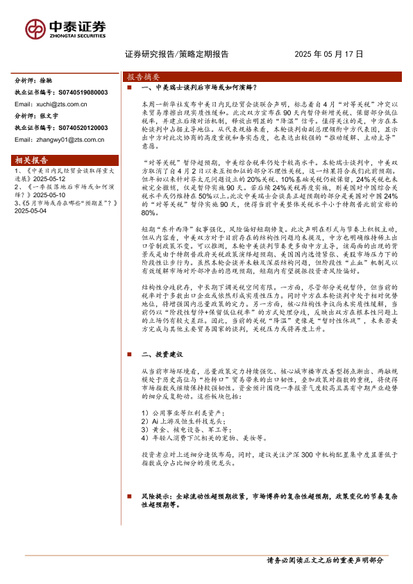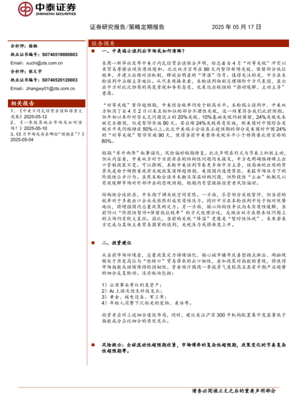 【中泰证券】【20250517】中美瑞士谈判后市场或如何演绎?-11页