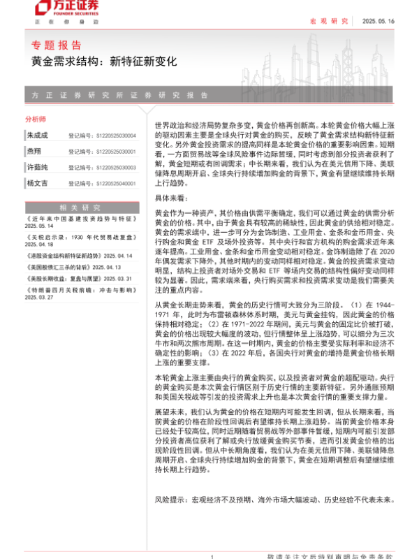 【方正证券】【20250516】黄金需求结构:新特征新变化-32页