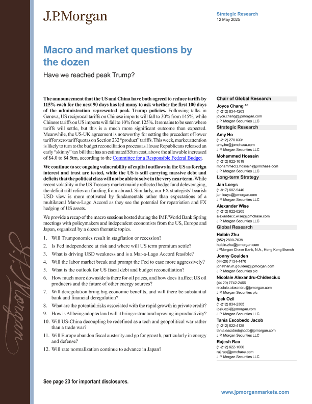 【J.P. Morgan】【20250512】FI-Macro and market questions by the dozen Have we reached peak-29页