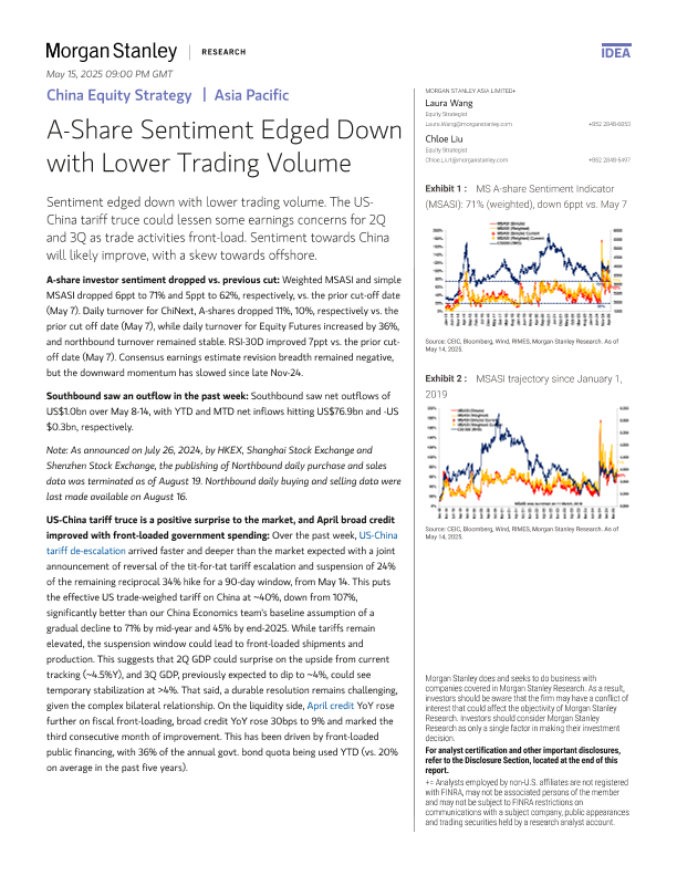 【Morgan Stanley】【20250514】China Equity Strategy A-Share Sentiment Edged Down with Lower Trading Volume-13页
