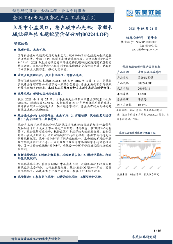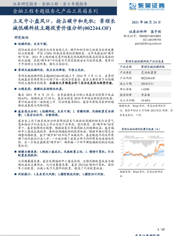 【东吴证券】【20210824】立足中小盘风口,抢占碳中和先机:景顺长城低碳科技主题投资价值分析-15页