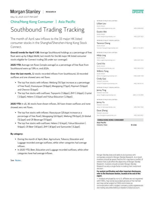 【Morgan Stanley】【202504】China/Hong Kong Consumer Southbound Trading Tracking-21页