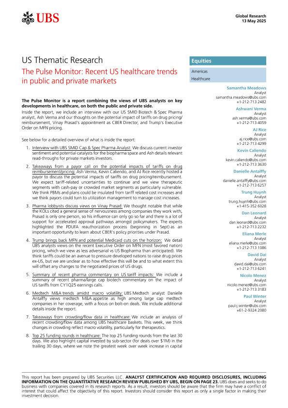 【UBS】【20250513】The Pulse Monitor Recent US healthcare trends in public and private markets-31页