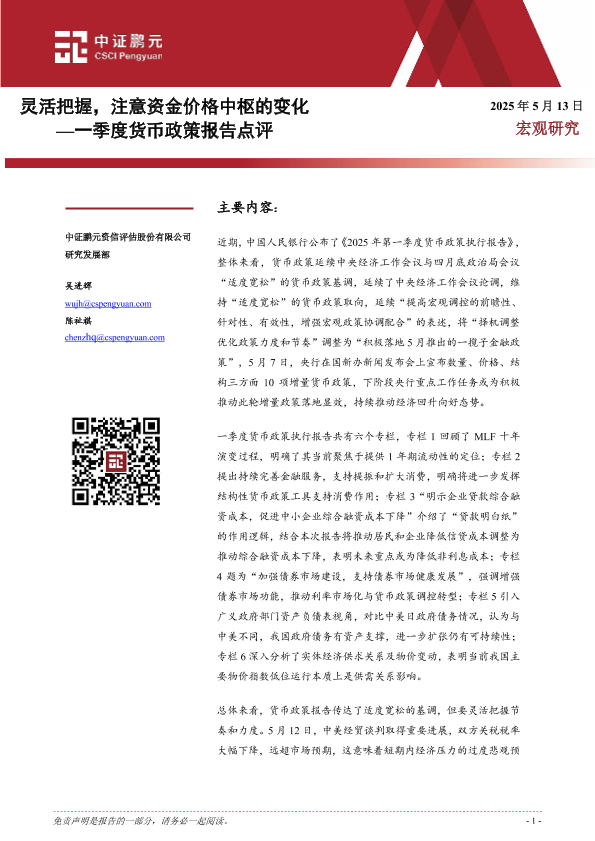 【中证鹏元资信评估股份有限公司】【20250513】一季度货币政策报告点评:灵活把握,注意资金价格中枢的变化-12页
