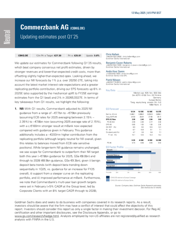 【Goldman Sachs】【20250513】德国商业银行(CBKG):2025年第一季度业绩公布后更新估值-11页
