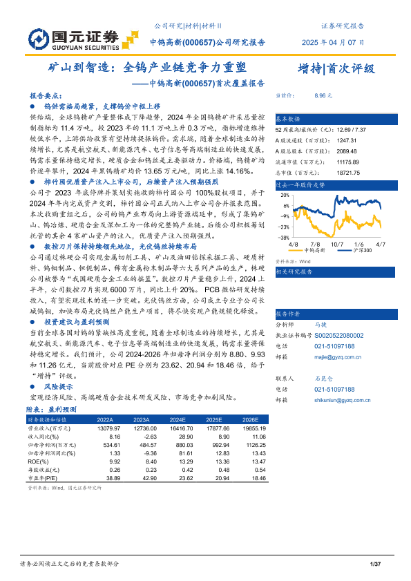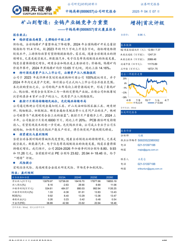 【国元证券】【20250407】中钨高新-000657.SZ-首次覆盖报告:矿山到智造:全钨产业链竞争力重塑-37页