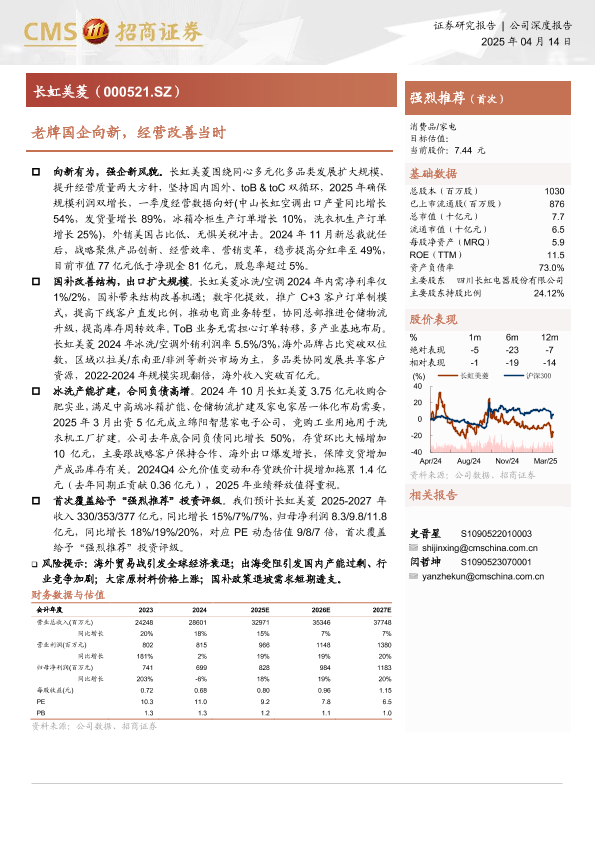 国企改革 家电行业 海外市场 经营改善 长虹美菱