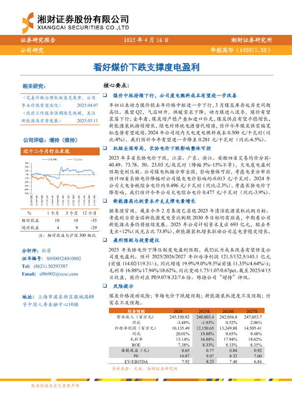 【湘财证券】【20250416】看好煤价下跌支撑度电盈利-30页