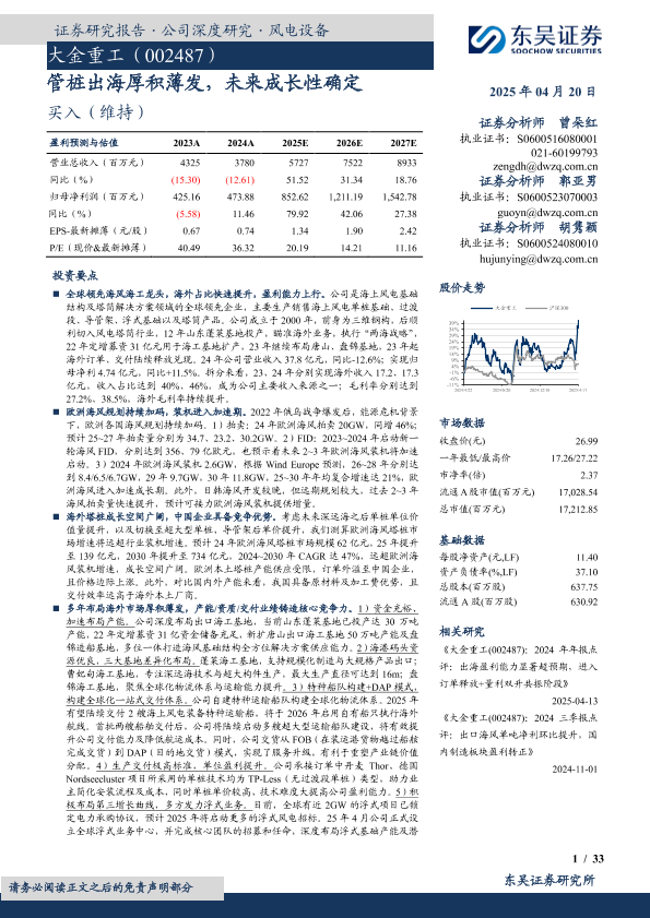 【东吴证券】【20250420】大金重工:管桩出海厚积薄发,未来成长性确定-33页