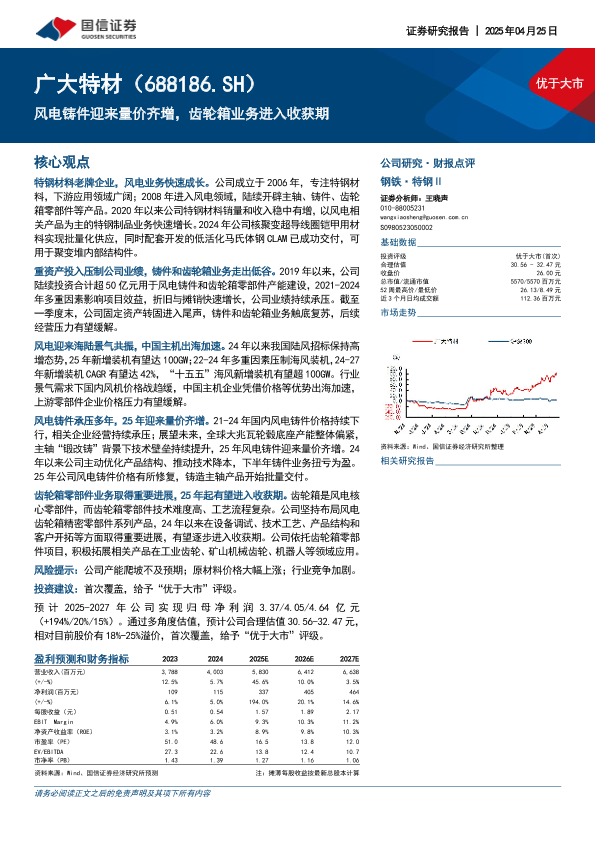 【国信证券】【20250425】广大特材-风电铸件迎来量价齐增,齿轮箱业务进入收获期-30页