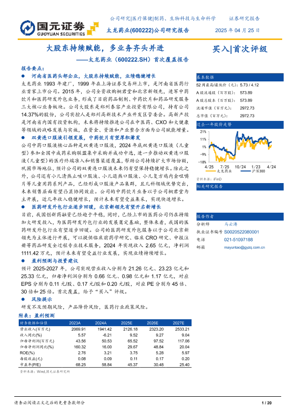 【国元证券】【20250425】太龙药业首次覆盖报告:大股东持续赋能,多业务齐头并进-20页