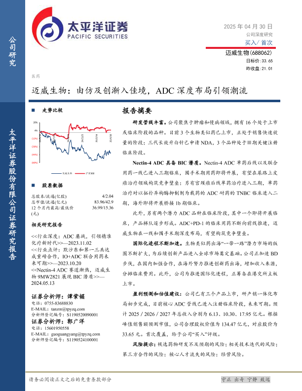 【太平洋证券】【20250430】迈威生物:由仿及创渐入佳境,ADC深度布局引领潮流-39页
