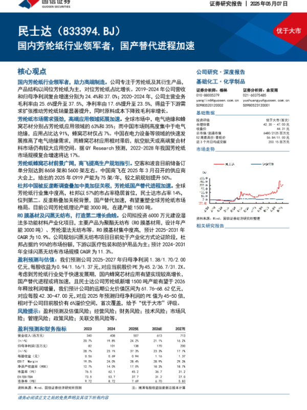 【国信证券】【20250507】国内芳纶纸行业领军者,国产替代进程加速-37页