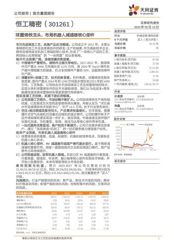 【天风证券】【20250513】恒工精密 - 球墨铸铁龙头,布局机器人减速器核心部件-21页