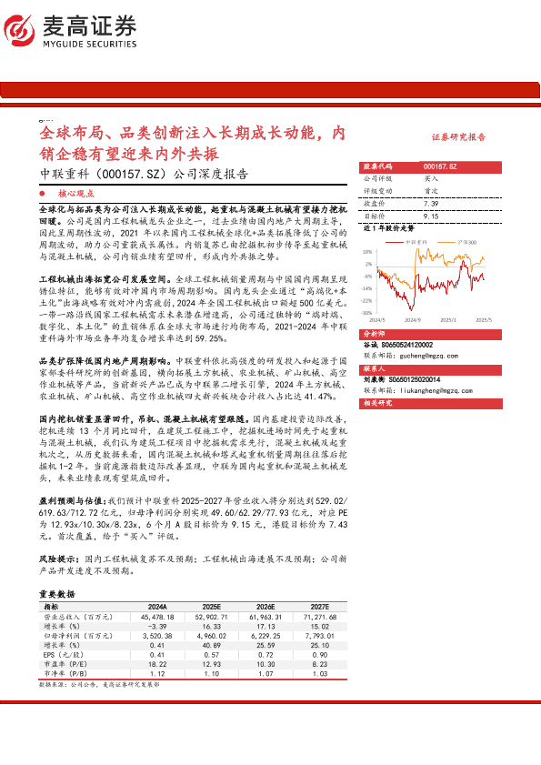 【麦高证券】【20250519】中联重科-000157.SZ-公司深度报告:全球布局、品类创新注入长期成长动能,内销企稳有望迎来内外共振-30页