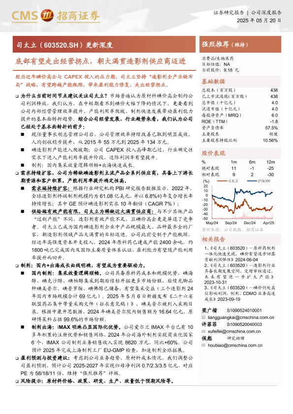【海通证券】【20250520】司太立-603520.SH-更新深度:底部有望走出经营拐点,朝大满贯造影剂供应商迈进-17页