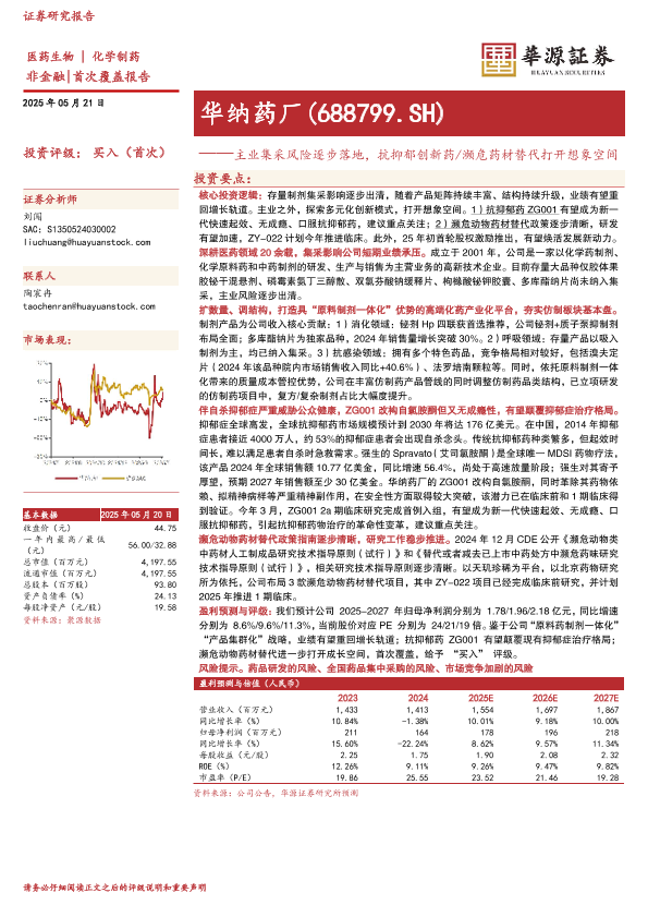 【华源证券】【20250521】华纳药厂-主业集采风险逐步落地,抗抑郁创新药 濒危药材替代打开想象空间-27页