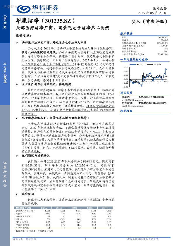 【华福证券】【20250523】华康洁净:头部医疗洁净厂商,高景气电子洁净第二曲线-22页