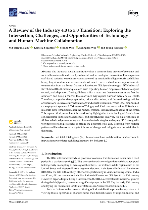 【Md Tariqul Islam】【20250324】A Review of the Industry 4.0 to 5.0 Transition Exploring the Intersection, Challenges, and Opportunities of Technology and Human–Machine Collaboration-34页