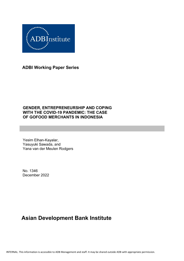 【Asian Development Bank Institute】【202212】Gender, Entrepreneurship and Coping with the COVID-19 Pandemic The Case of GoFood Merchants in Indonesia-32页