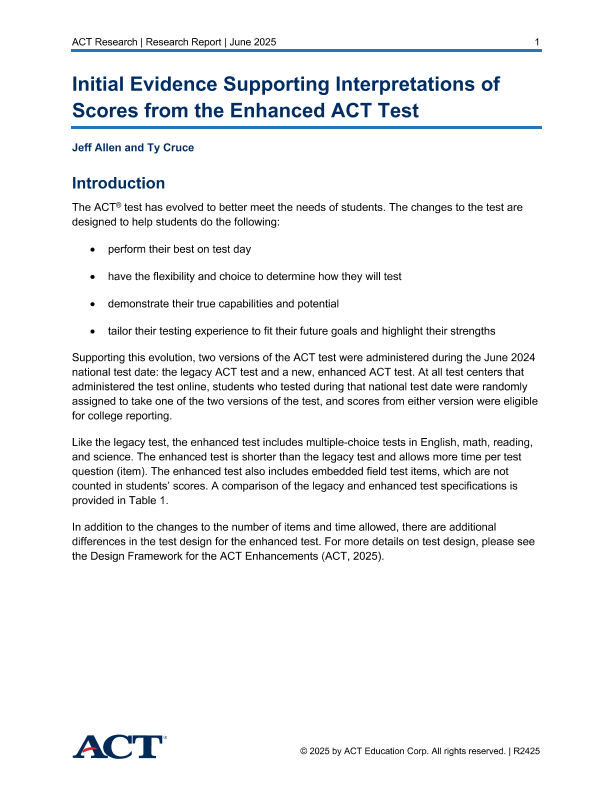 【ACT】【202506】Initial Evidence Supporting Interpretations of Scores from the Enhanced ACT Test-44页