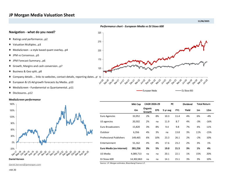 估值倍数 广告增长预测 欧洲媒体 财务表现 股市指数