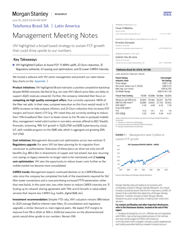 【Morgan Stanley】【2025】Telefonica Brasil SA (VIV) 管理层会议纪要-8页