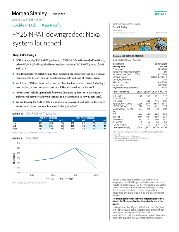 【Morgan Stanley】【202506】Cochlear Ltd. FY25 NPAT downgraded; Nexa system launched-7页