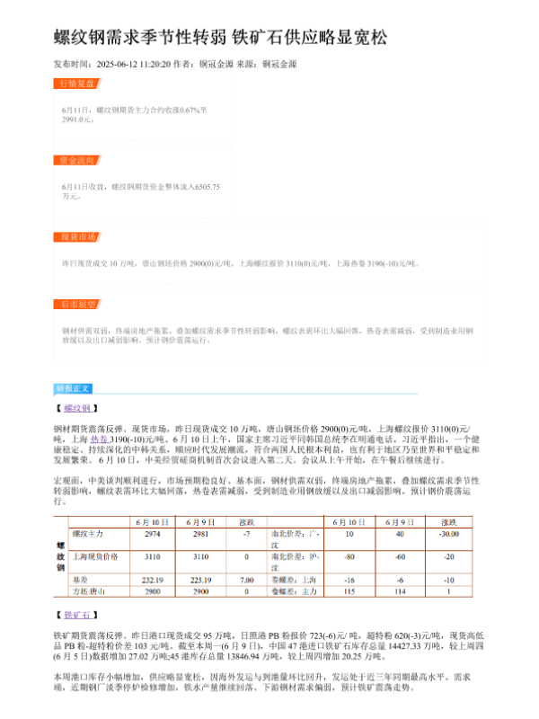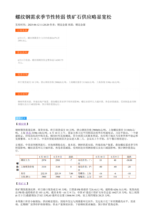 【Goldman Sachs】【20250612】螺纹钢需求季节性转弱铁矿石供应略显宽松-2页