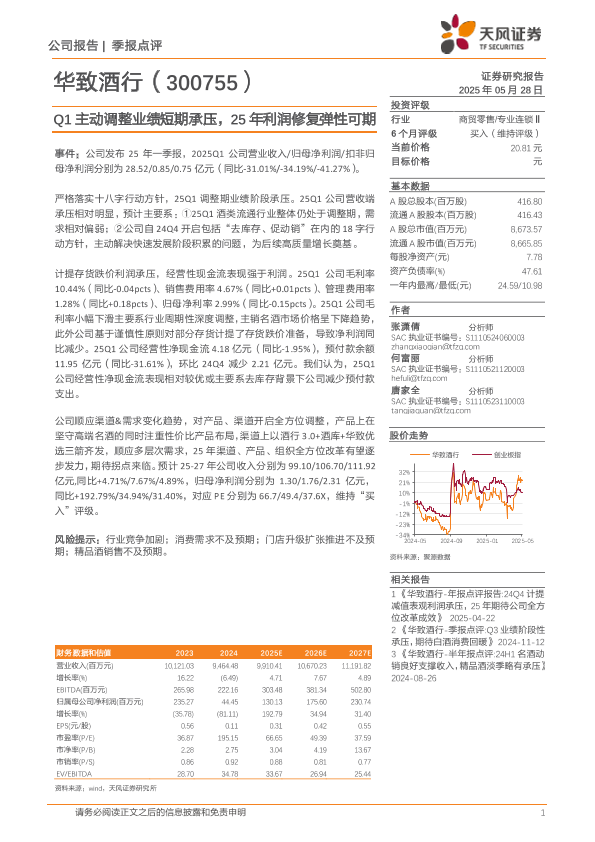 【天风证券】【20250528】Q1主动调整业绩短期承压,25年利润修复弹性可期-3页