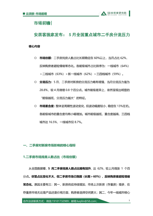 【安居客房产研究院】【2023】5月全国重点城市二手房分流压力-7页