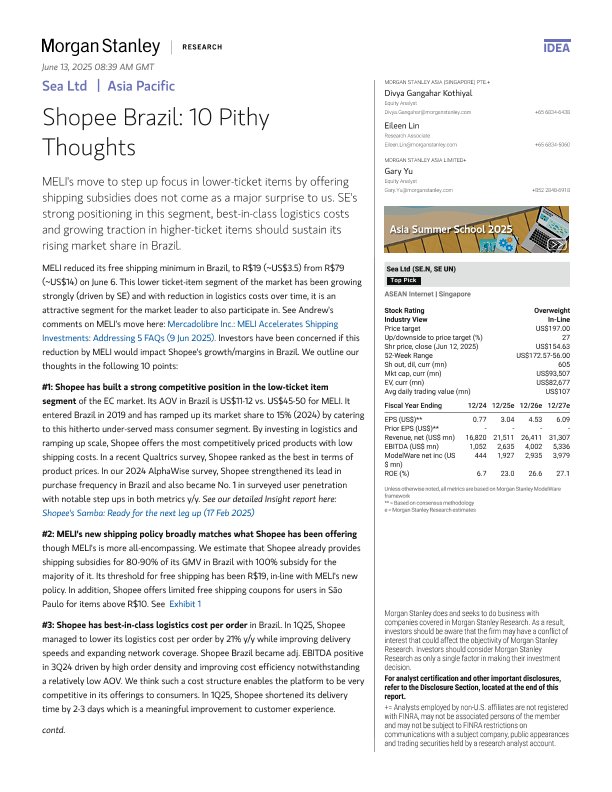 【Morgan Stanley】【2025】Shopee Brazil 10 Pithy Thoughts-12页