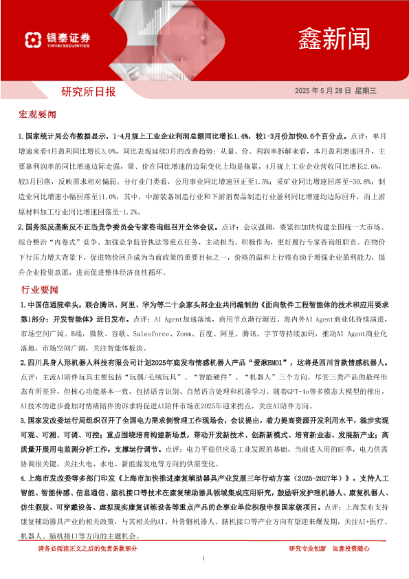 【银泰证券】【20250528】鑫新闻-6页